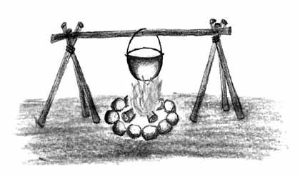 avila okrasno ograjo okoli šotorov, Peter pa je okrasil jambor s kamenčki.