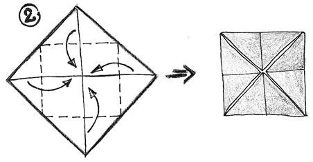 Papir obrni in ponovno do sredine zapogni vse štiri vogale (SLIKA 3).