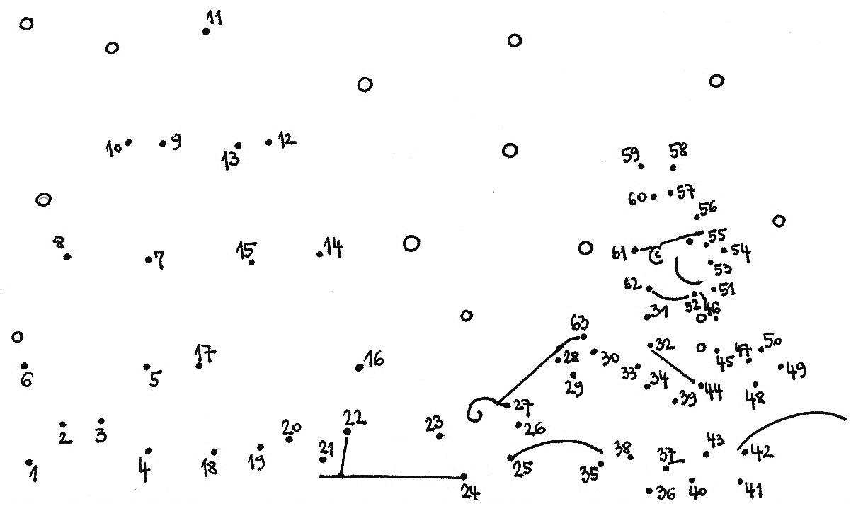 Poveži pike od 1 do 63 in ugotovi kakšna risbica se skriva za njimi.