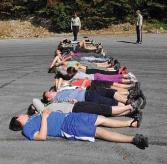 "Samo da vzamem našo vodovo knjižico, takole ... Leto 2012/13, vod: Pingvini ... Člani?« vrže pogled na edine tri prisotne, "maloštevilni. Tako, zdaj pa mi povejte, kaj ste še počeli čez poletje. Tina, vidim, da si vsa 'nova'?"