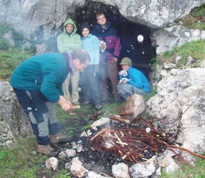 In nas je vodilo iz Tolmina v Drežnico in nato pot pod noge do planine Zaprikraj. Ekipa enajstih grč iz Severno primorskega območja (SPOOT) se je za vikend, 13. in 14. oktobra, odpravila na hribovski bivak, ki smo si ga postavili v neposredni bližini planine Zaprikraj nad Drežnico. Pogodili smo se z domačini planine, ki smo jim v zameno za prostor, pomagali pri urejanju pašnika, ko smo v breg nosili kole, ki bodo spomladi služili za ogrado. Torej prijetno s koristnim v ne tako prijetnem vremenu, pa vendar: po taborniško v prijetni družbi je vse premagljivo in se temu lahko reče oddih in sprostitev, preprosto odklop.