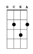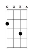 Prijem akorda D na kitari in akorda G na ukuleli.