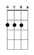 *Številka označuje polje na vratu kitare, kjer primemo struno. "0" pomeni, da struno zaigramo, a je ne primemo. "x" pomeni, da te strune ne zaigramo.