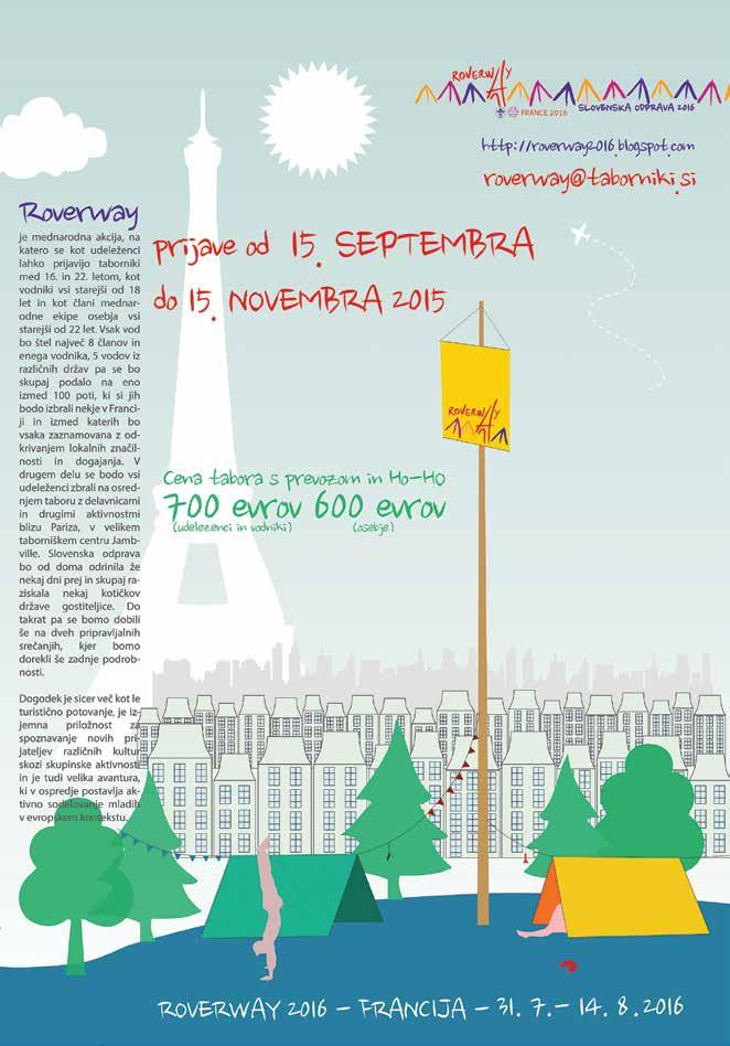 Poleti je sonce nadoknadilo vse deževne dni prejšnjega poletja. Taborili, četudi na kratko, smo praktično vsi rodovi in mnogi ste to poletje raziskovali ne samo lepote naše podalpske deželice temveč tudi širne pokrajine drugih držav. Zato smo septembrsko številko nekoliko zavili v mednarodne tone, da bi vam zbudili še večjo željo po raziskovanju sveta. Ob tem naj namignemo, da bo del proge letošnjega Republiškega orientacijskega tekmovanja potekal po italijanskem ozemlju (ne pozabite na evropsko kartico zdravstvenega zavarovanja!) in da se septembra odpirajo prijave na Roverway 2016, ki bo potekal v čudoviti Franciji.