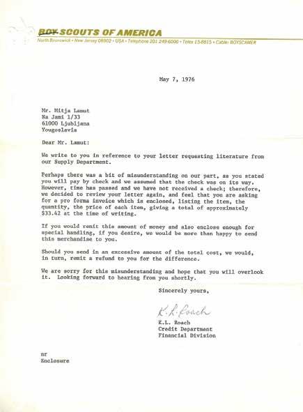 Korespondenca z WOSM je bila sicer bolj formalna, skopa, vendar so mi začeli pošiljati revijo World Scouting, tudi številke iz leta 1969 in naprej, prav tako pa sem kar na domači naslov dobival njihov News letter – Bulletin, ki sem ga seveda posredoval nekaterim tabornikom in takratnim taborniškim funkcionarjem. Predvsem pa sem bil preko tega seznanjen, da bo naslednji svetovni jamboree leta 1975 na Norveškem, in v tem sem videl priložnost, da se bolje spoznamo s to organizacijo.