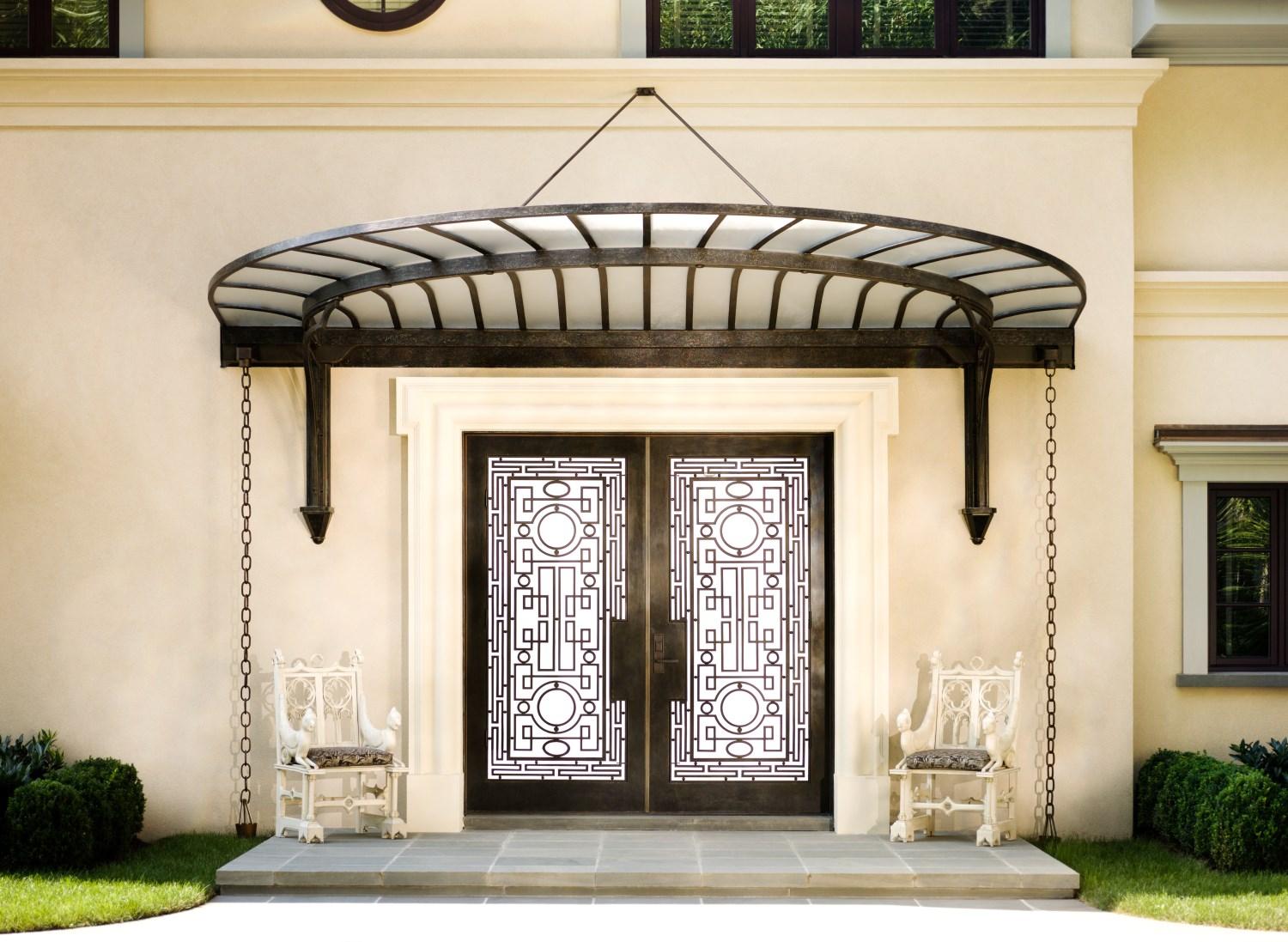 Renovationofa1950sstuccohomefeaturinga 3,500-poundsteelandglassentrymarqueewith structural reinforcement, new detached pool house withkitchenette and changing rooms, a three-cargaragewithguestsuiteaboveconnected by a breezeway, expanded kitchen, family room, and bedroom suite with balcony, new staff quarters, pool, terraces, and pergola. The interior wasfullygutted,reconfigured, andrefinished.