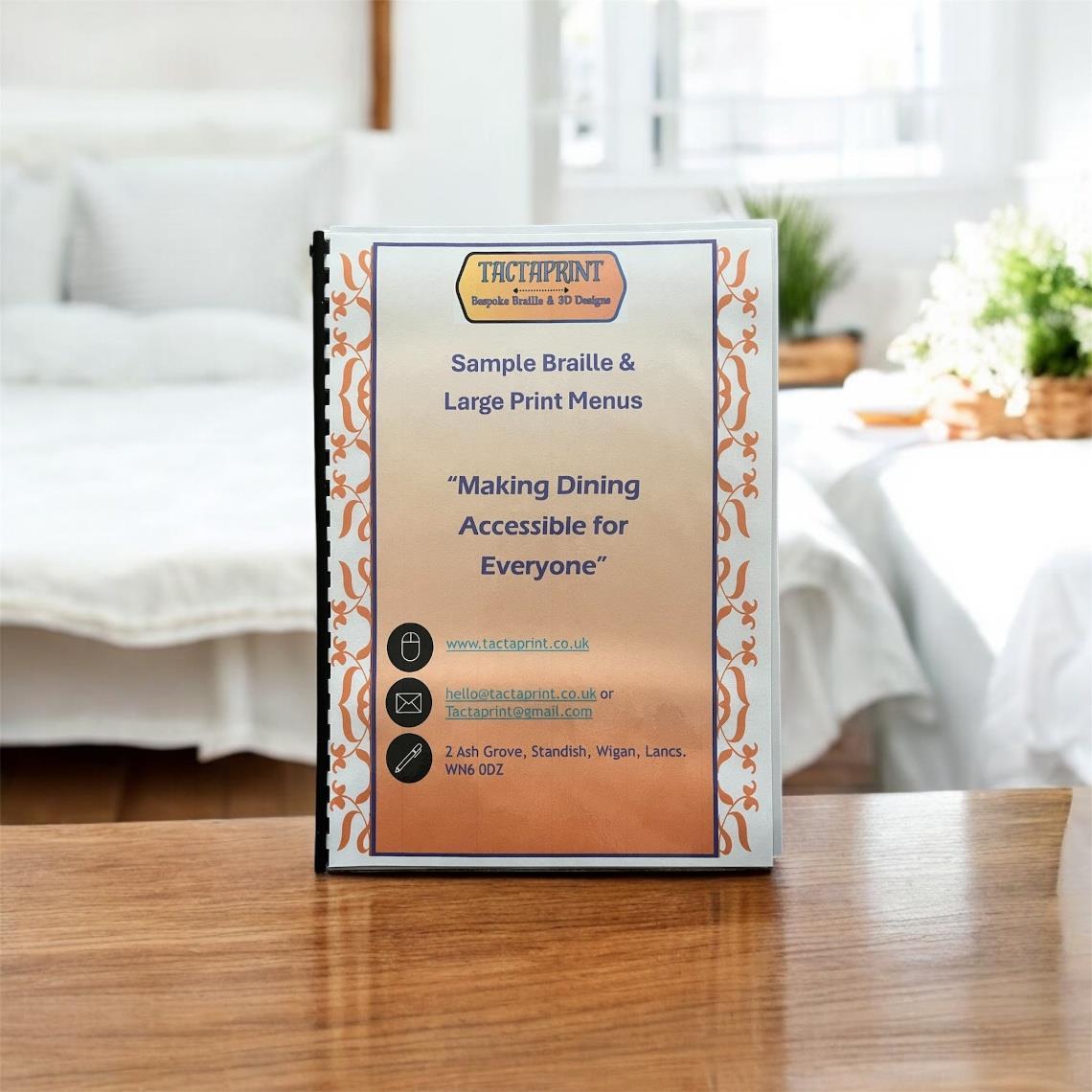 At Tactaprint we specialise in creating high quality Braille and large print menus for restaurants, cafes, and businesses committed to providing an inclusive dining experience. Our services ensure that every customer, regardless of visual ability, feels valued and included.