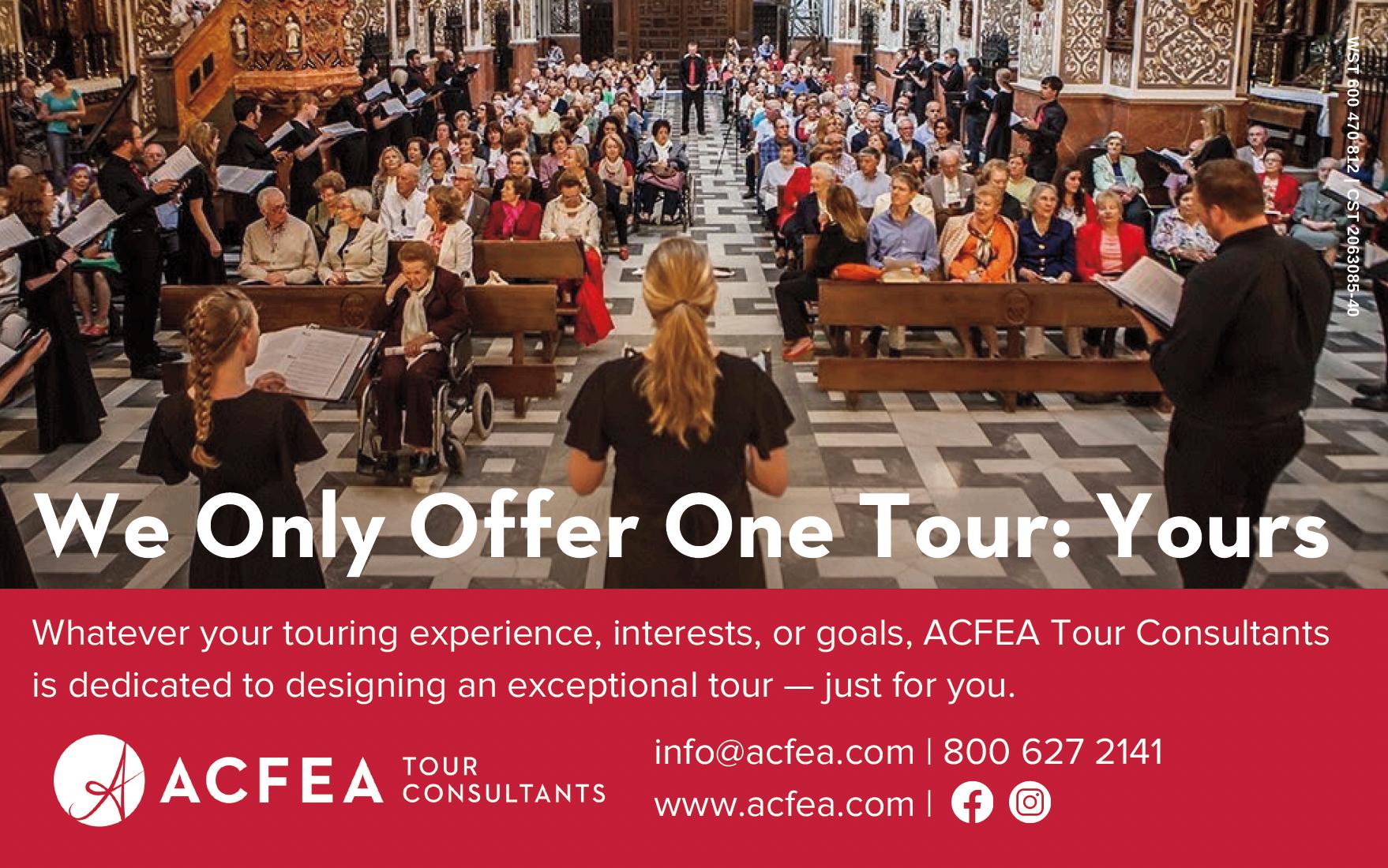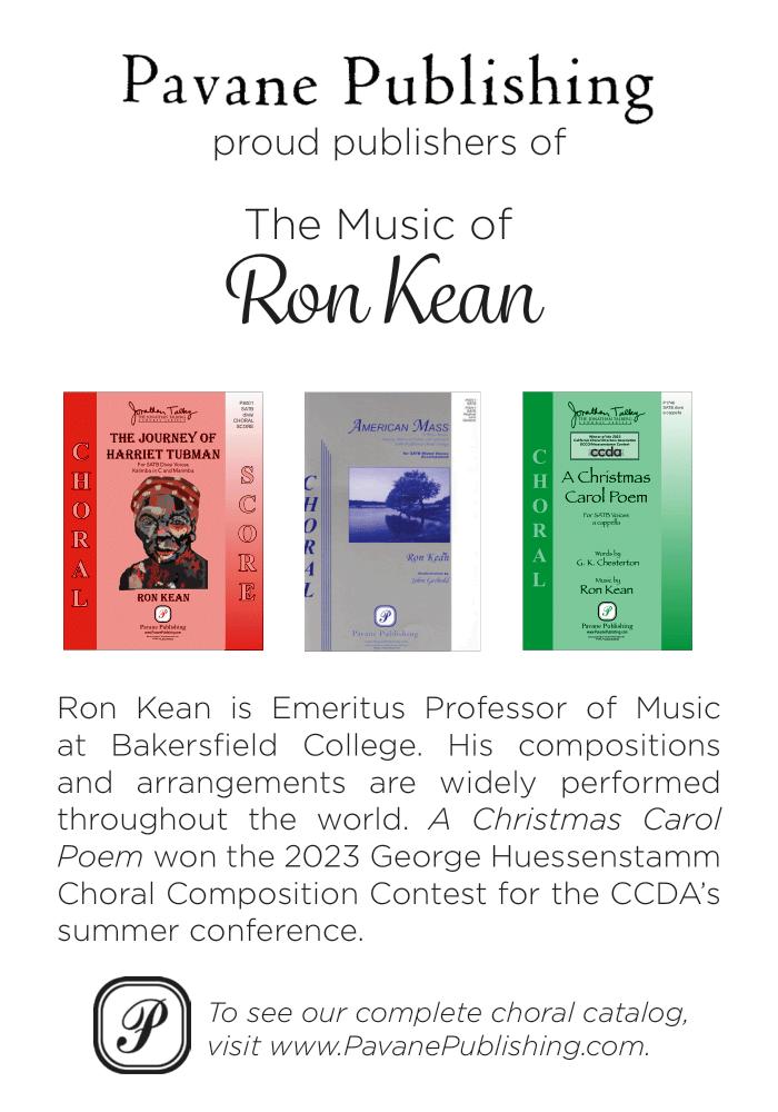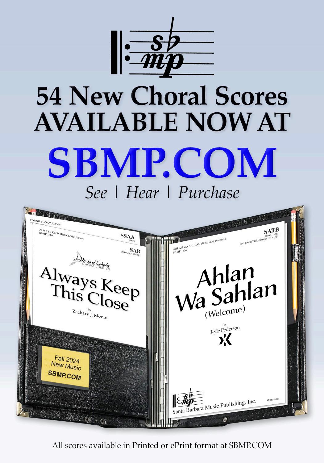 Readers, I hope that you find repertoire and knowledge in these pages to help carry you successfully through the rest of the year. If I might suggest a takeaway from this issue, it would be to be open and welcoming to someone or something new. Try a new work, explore literature by a newfound composer, be inspired to try choral music from another country or culture, or connect with a living composer with commission ideas!