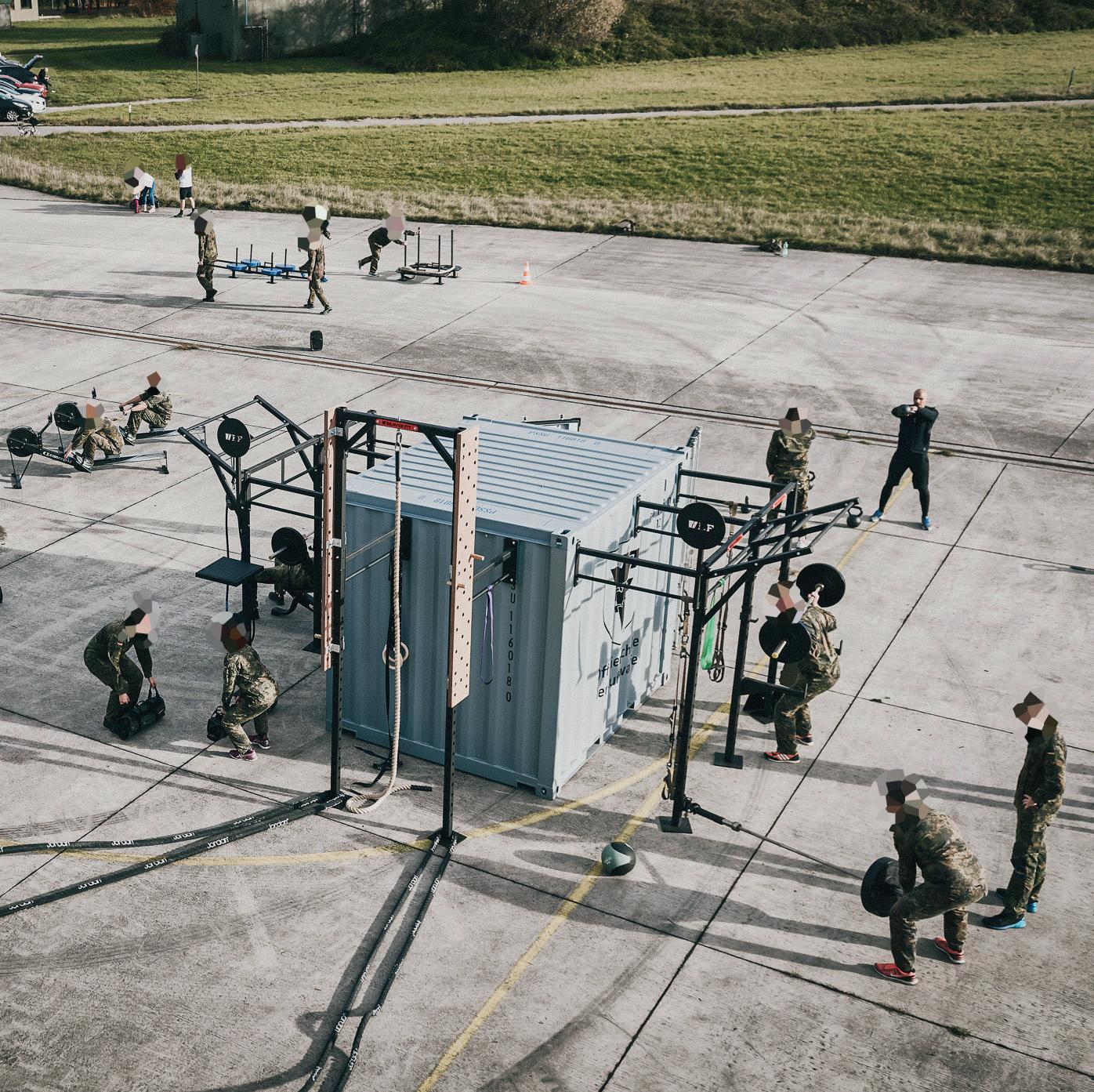Die modularen Sportcontainer sind speziell für die Anforderungen militärischer Einsatzkräfte konzipiert und ermöglichen ein gleichzeitiges Training von mindestens 20 und bis zu 40 Soldaten, je nach Containergröße. Vollumfänglich ausgestattet mit Military-Fitness-Komponenten, unterstützen sie ein funktionales Ganzkörpertraining für Kraft, Ausdauer und taktische Leistungsfähigkeit.