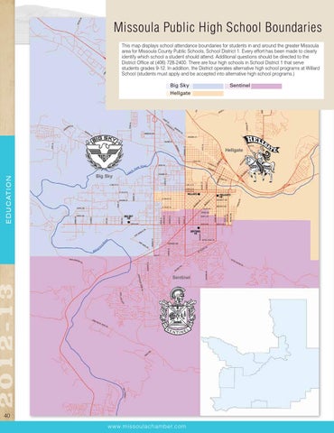 Missoula Public High School Boundaries This map displays school attendance boundaries for students in and around the greater Missoula area for Missoula County Public Schools, School District 1. Every effort has been made to clearly identify which school a student should attend. Additional questions should be directed to the District Office at (406) 728-2400. There are four high schools in School District 1 that serve students grades 9-12. In addition, the District operates alternative high school programs at Willard School (students must apply and be accepted into alternative high school programs.)