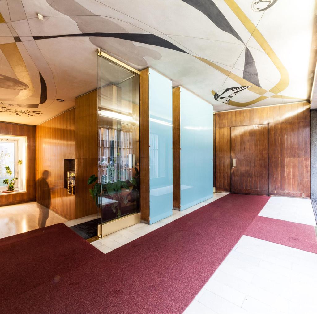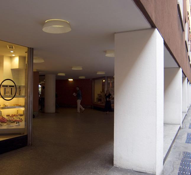 weitere prominente Nachbaschaft hat auch das Wohnhaus an der Piazza Sant´Ambrogio (1948): es schliesst an das Haus und Büro von Caccia Dominioni (1947-1949) an. Besondere Sorgfalt richteten Asnago & Vender auf die Fassaden - bei vielen Projekten verwendten sie Steinverkleidungen ebenso wie Kombinationen aus Stein - und Sichtziegelmauerwerk und betrieben ein subtiles Spiel mit leichten Verschiebungen und unterschiedlichen Fensterformaten.