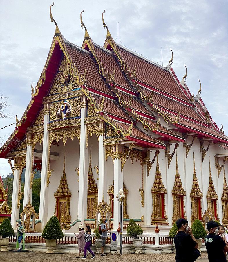 Á Phuket eru 29 búdda hof og merkilegast þeirra er Wat Chalong sem er tileinkað tveim ur virðulegum munkum, Luang Pho Chaem og Luang Pho Chuang. Þeir leiddu íbúa Chalong í baráttunni gegn kínversku uppreisninni árið 1876 og hjálpuðu slösuðum með jurtalækning um. Við fórum að skoða hofið og var magnað að sjá byggingarnar á svæðinu, þær voru ótrúlega fallegar í gylltum, hvítum og rauðum tónum. Það er líka magnað að hugsa til þess að þessi hof með öllum litlu smáatriðunum voru byggð snemma á 19 öld þegar að meirihluti Íslendinga bjó enn í torfbæjum.