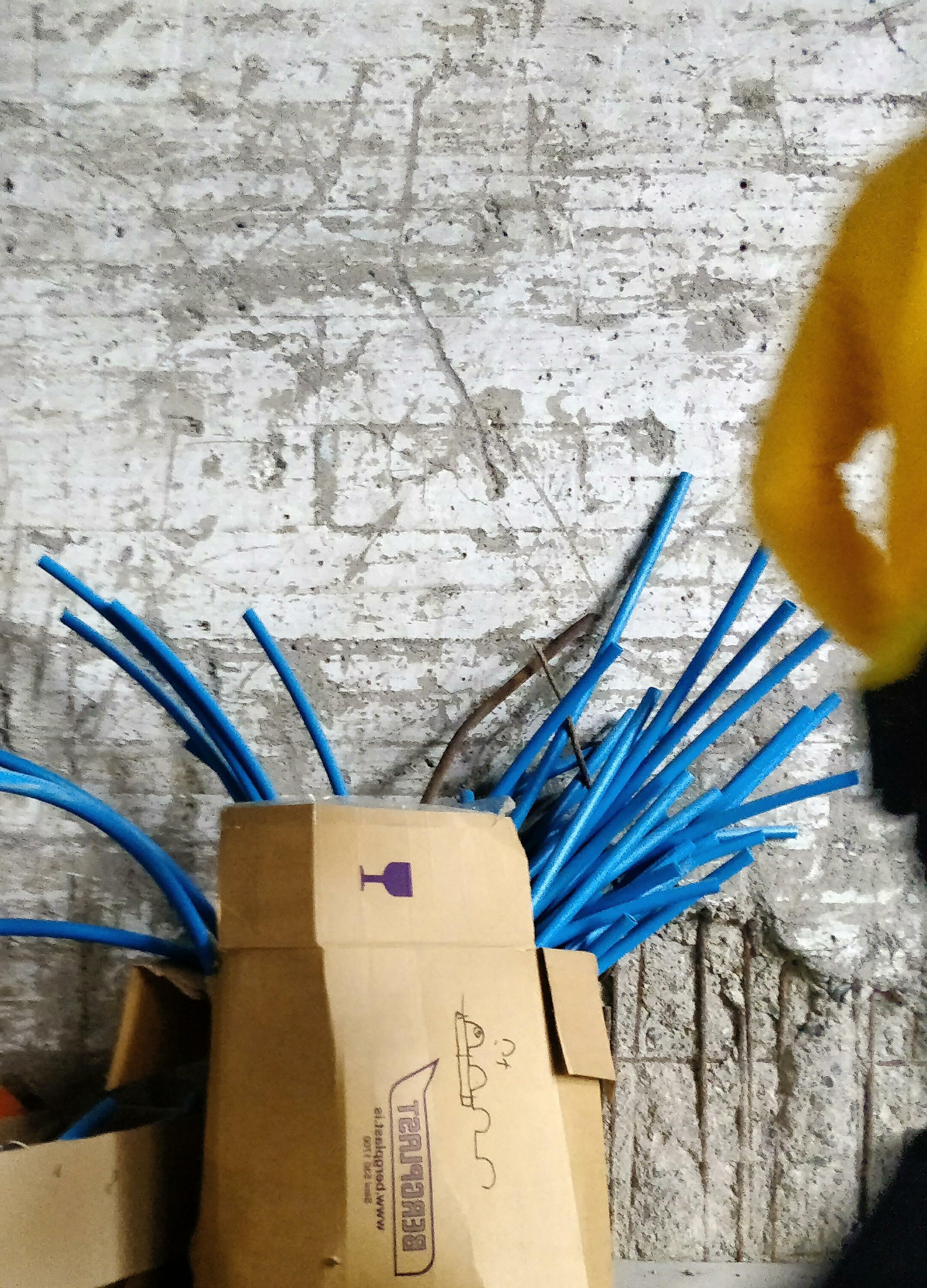 Ýmir er að vinna í því að skipta ríminu niður með ótrúlegustu kúnst. Veggirnir rísa og skemman tekur á sig mynd sem mismunandi vinnurými til allskyns sköpunar. Allt hér inni er byggt úr endur nýttum efnivið sem annars átti að henda.