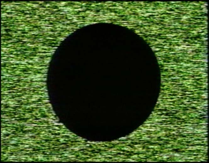 Noisefields is a pioneering attempt to depict the materiality of an electronic signal. Throughout the video, a circular field of signal noise, or “snow,” flashes in a rhythmic pattern on the screen. The “noise,” a random display pattern created by electromagnetic interference, is created by sources that range from nearby electronic devices to cosmic microwave radiation produced during the Big Bang. The visual field of “snow” is accompanied by a fluctuating static sound modulated by the energy content of the video signal, extending the audio-visual rendering of the invisible electronic signal.