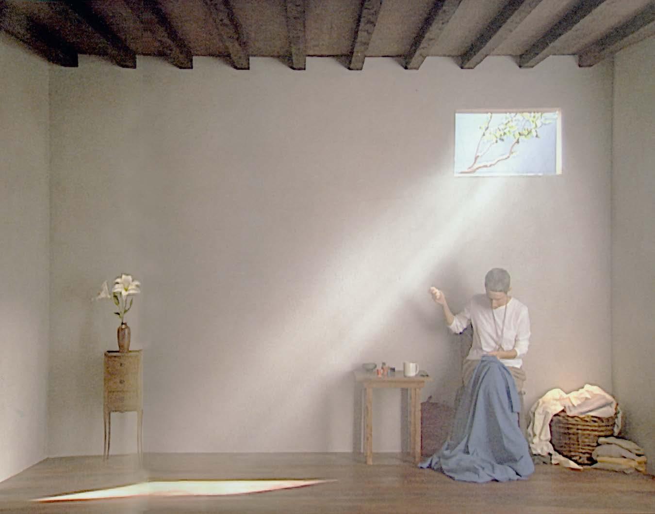 Bill Viola’s Catherine’s Room captures the sacred value of ordinary routines, inspired by the life of Saint Catherine of Siena (1347–1380), who had visions of stigmata on her hands and whose graceful writings describe ecstatic devotion. Filmed in real time, the five videos portray Catherine’s daily activities, including meditation, prayer, writing, and sleeping in quiet isolation. The seasons pass through her window, symbolizing her life stages spent in a single room. Viola’s scene asks viewers to identify how spirituality or introspection manifests below the surface of what we can observe.