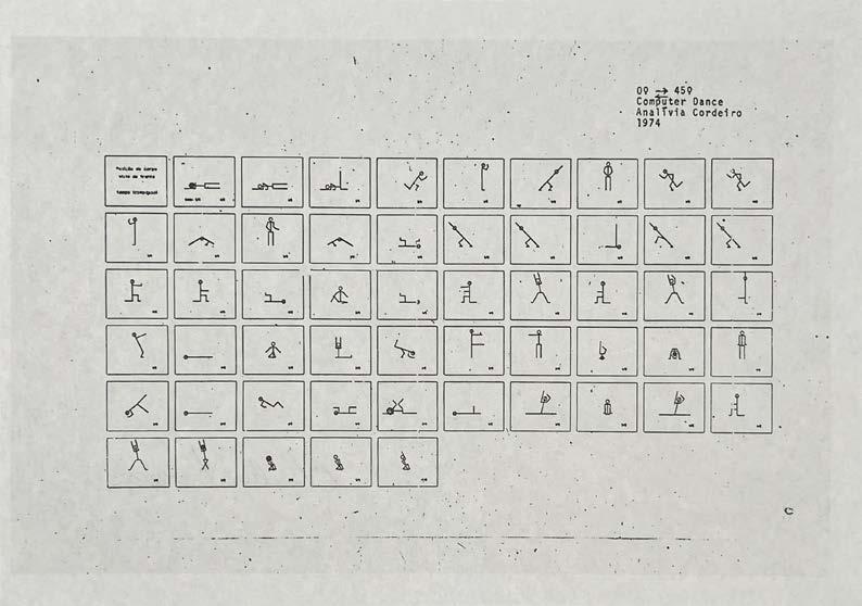 Cordeiro’s dance notations were generated by a Fortran VI output. The artist would then translate the output into notation for the dancer to interpret as choreography.