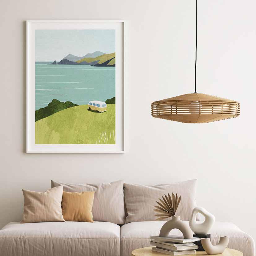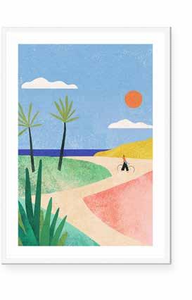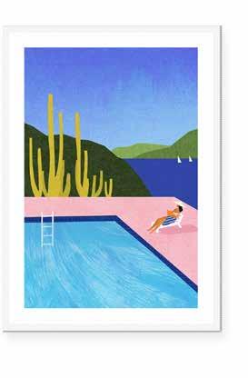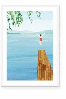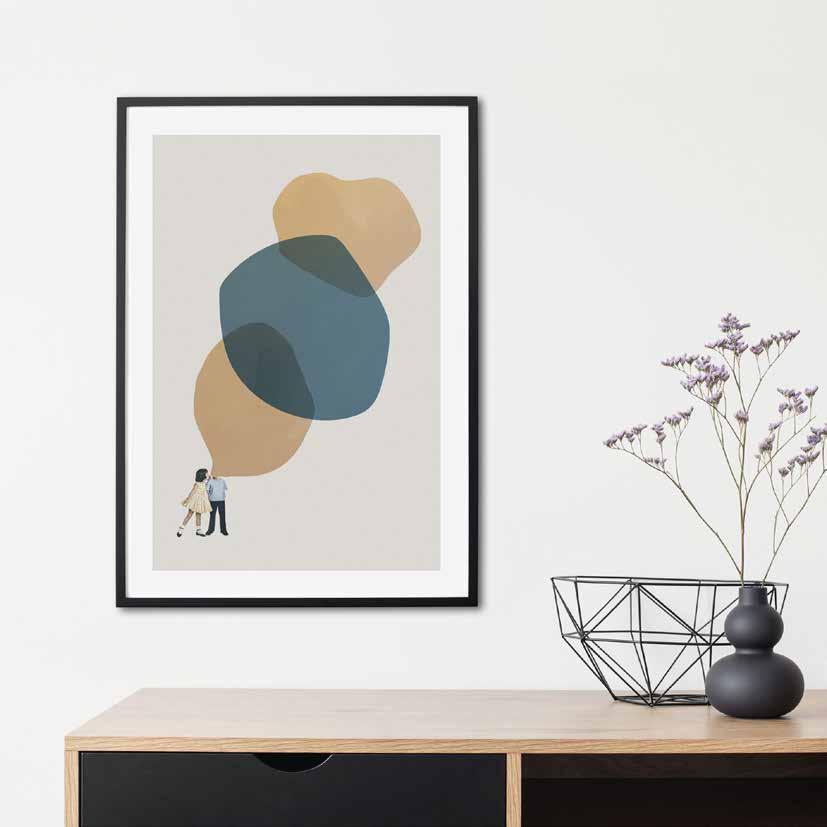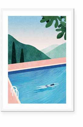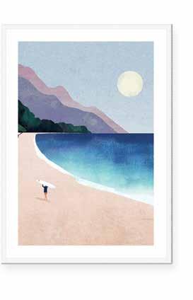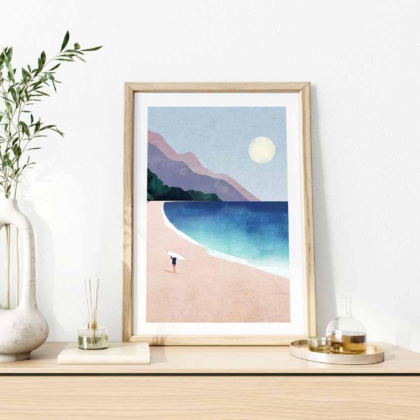 Working in a combination of hand-painted and digital techniques, Henry creates richly textured artworks with a sense of calm and escapism.
