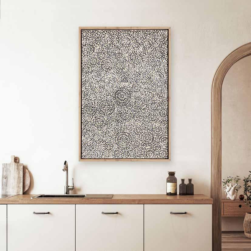 Named after a fire dreaming site west of Yuendumu, Warlukurlangu means ‘belonging to fire’ in the local language Warlpiri.
