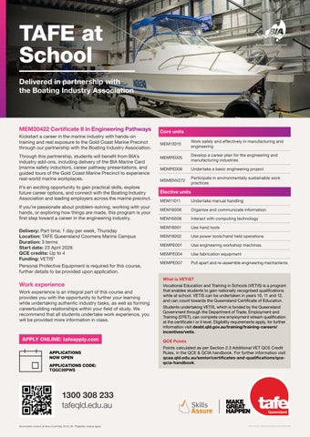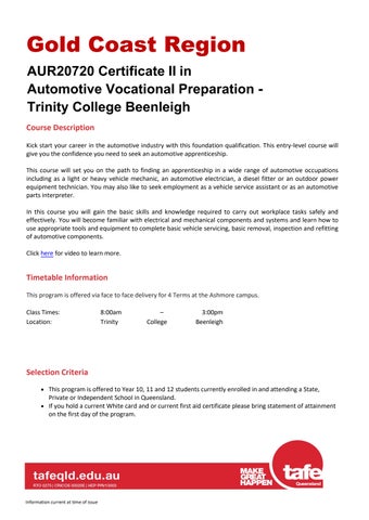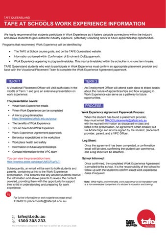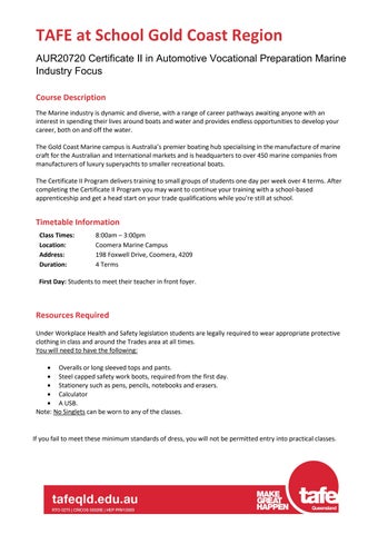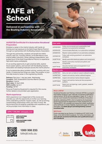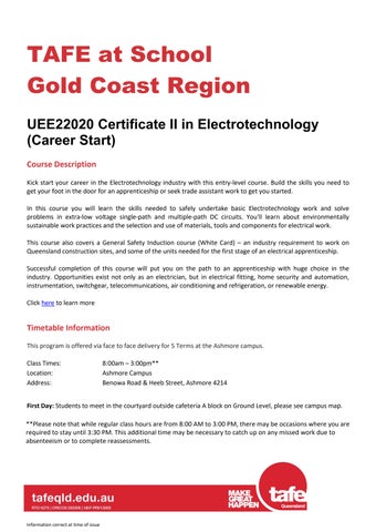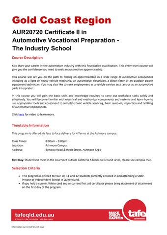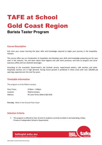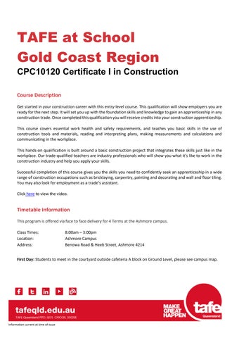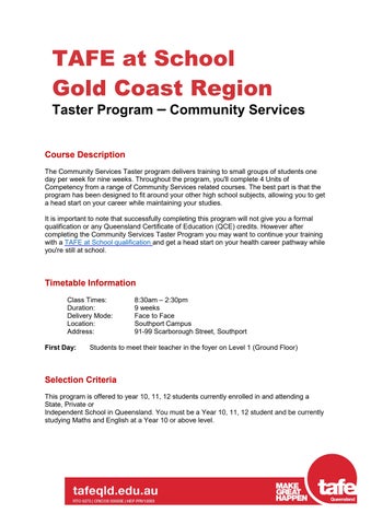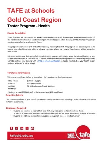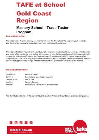 TAFE Queensland Gold Coast – TAFE at School (TAS) TAFE Queensland Gold Coast’s TAFE at School team publishes a wide range of resources to support students exploring vocational pathways while completing high school. Their Issuu collection features course brochures, tasters, study guides, handbooks, and program information across industries such as construction, health, hospitality, community services, engineering, automotive, creative industries and more. With a focus on accessible, practical training options, the team helps students understand their study choices, prepare for industry expectations, and build clear pathways into further education, apprenticeships, and employment.
