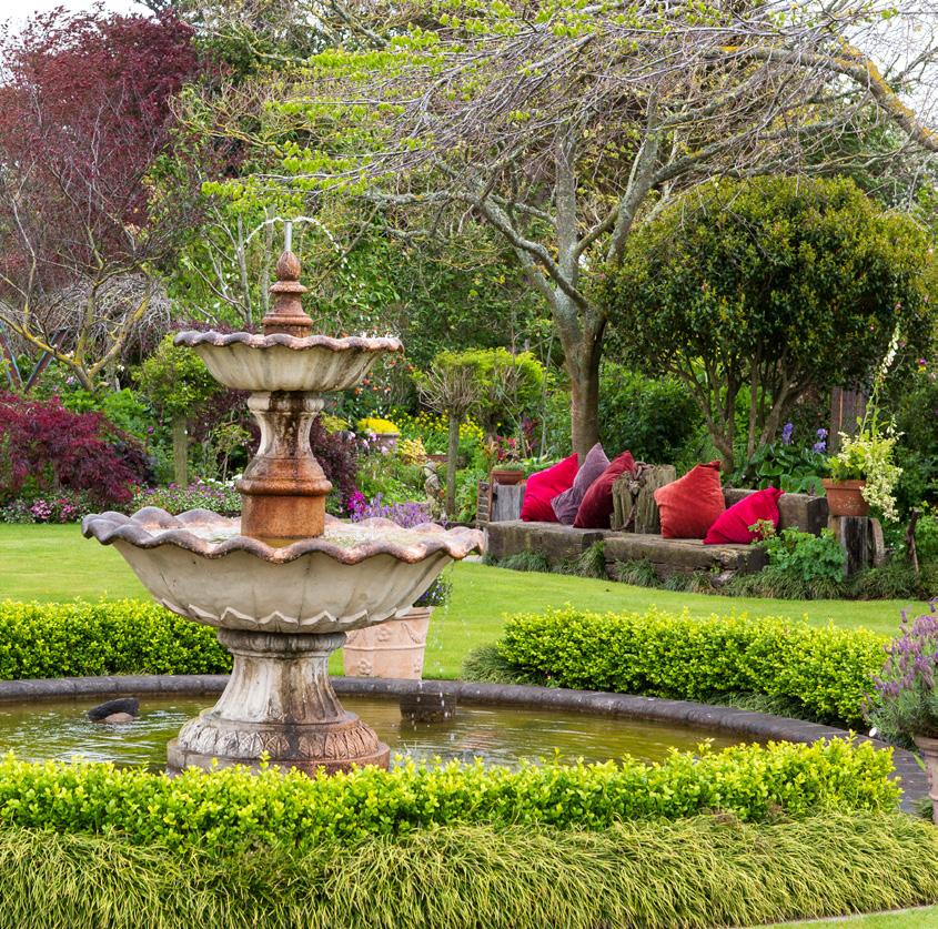 This vibrant, colourful garden is framed by a canopy of deciduous trees. Rhododendrons and viburnums flower in profusion. Collections of hostas and heuchera interplay in the filtered light areas giving a sense of peace and timelessness. A range of different edging plants give definition to borders, many of which are filled with amazing iris varieties, peonies and special plantings. Simon Lees woodcraft is available to purchase and Jane Downes ‘BeeHaven’ sculpture is a wonderful artistic addition.