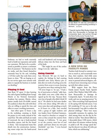 m Sam Beatt ’07 with the culmination of his efforts at a guitar-building workshop in Vermont. Jon Guiffre . Spanish teacher Matt Budzyn biked 600 miles from Roncesvalles to Santiago de Compostela, Spain, last summer through the Davis Family Junior Faculty Fund.