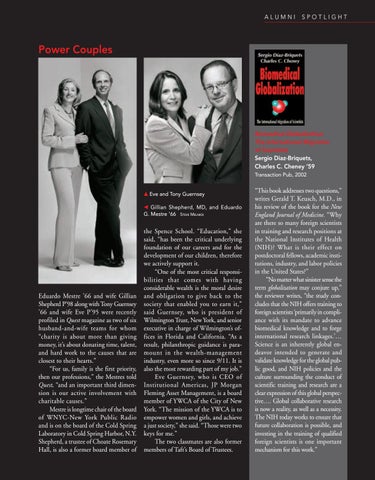 Biomedical Globalization: The International Migration of Scientists Sergio Diaz-Briquets, Charles C. Cheney ’59 Transaction Pub, 2002 Eve and Tony Guernsey Gillian Shepherd, MD, and Eduardo G. Mestre ’66 STEVE MELNICK