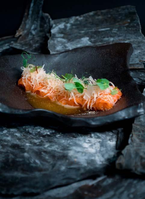 cena única en el restaurante Relais & Chateaux. El maestro detrás de la cocina es el chef Marco Antonio Salinas Garay, encargado de crear un menú refinado con toques patagónicos en cada plato para acompañar el paisaje y también los productos de estación de la región con un toque especial.