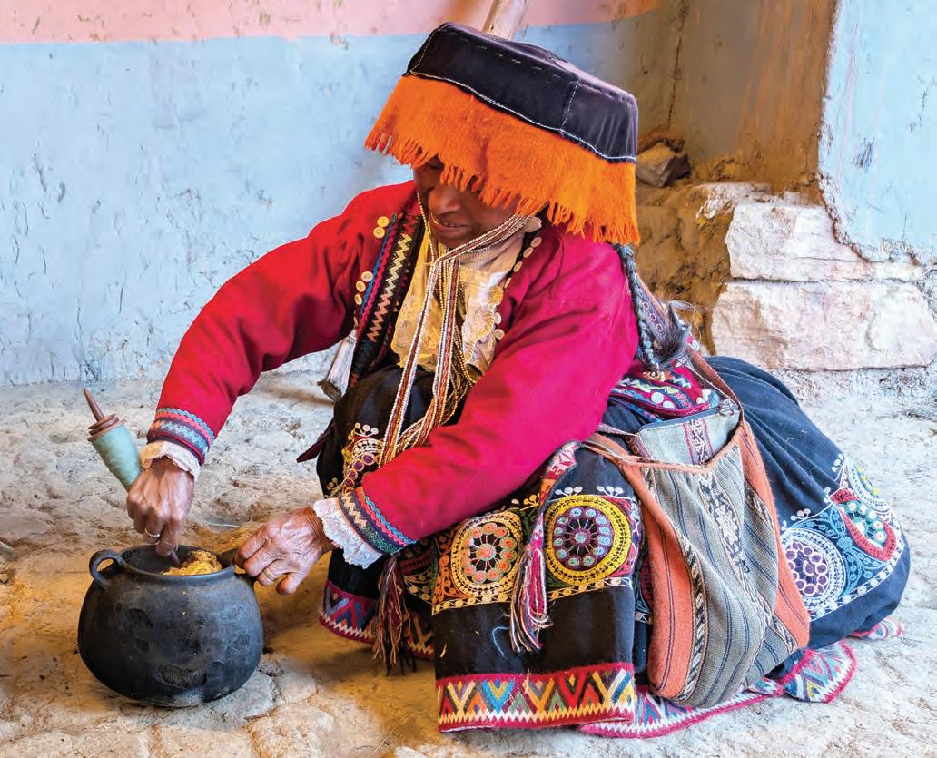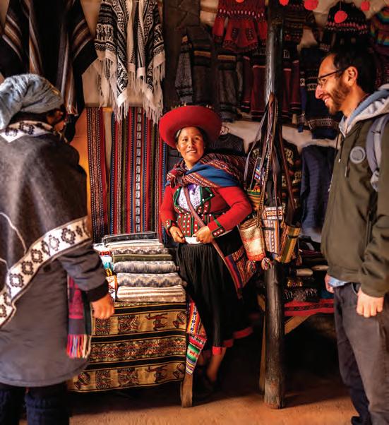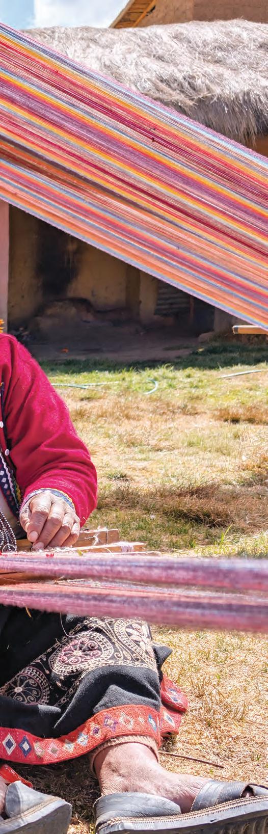 High in Peru’s Sacred Valley, the Quechua community of Huilloc is preserving the traditions of Inca times. Daily life here follows ancestral rhythms—meals prepared from organic produce harvested with reverence for the land, every textile woven by hand, and a genuine hospitality that honors each guest. Travelers are graciously welcomed into this community through hands-on learning experiences including ancient weaving, cultivating the fields with centuries-old tools, cooking with local ingredients, and joining reforestation efforts. Ceremonies and rituals offer glimpses into spiritual traditions, while time spent with local students reveal the next generation of cultural guardians. Women artisans, whose intricate textiles provide vital income, carry forward Huilloc’s creative legacy—transforming heritage into opportunity while sustaining both family and tradition. (See page 40 to learn about another Peruvian weaving community.)