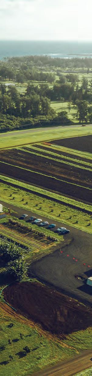 Kuilima means “holding hands with the land,” a name that reflects the purpose of the 468-acre farm. More than a source of food, Kuilima is a classroom dedicated to preserving Hawai‘i’s agricultural heritage. “Kuilima Farm is a great window into how native food systems used to work in Hawai‘i, and a unique experience within modern food security and a rarely seen farmto-resort operation,” says Ramsey Brown, vice president of diversified agriculture for Pono Pacific Land Management, which operates the farm.