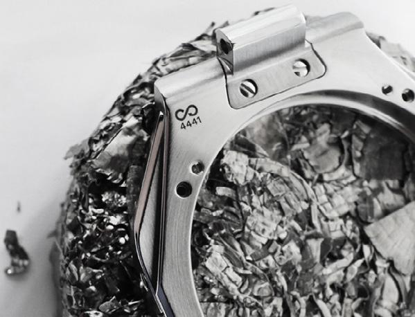 France capte les rebuts de titane de l’aéronautique pour alimenter Panerai en EcoTitanium®. Même combat du 100% recyclé pour le caoutchouc, le laiton, le carbone et même l’or.