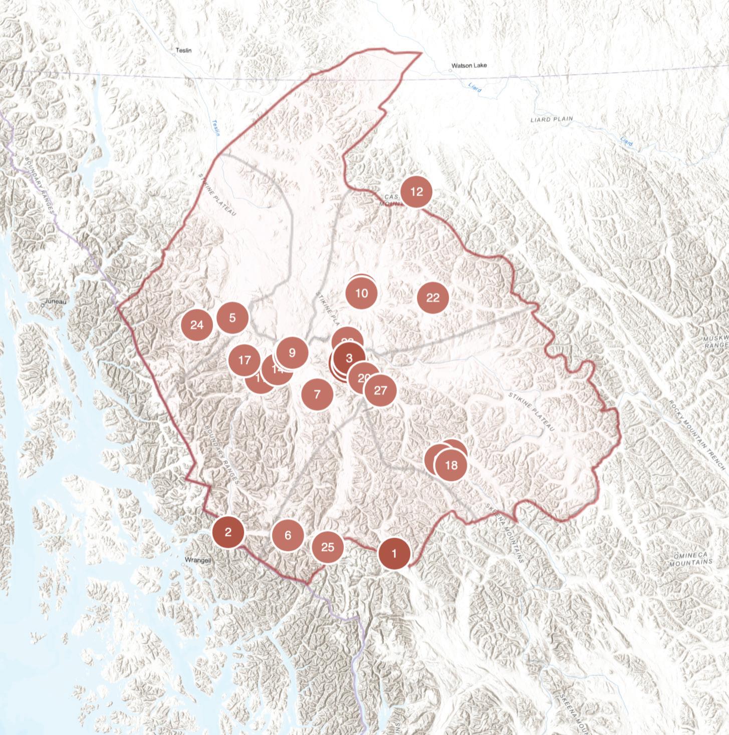• Pavilions for each community, featuring story panels, Tahltan art, and maps with Tāłtān placenames
