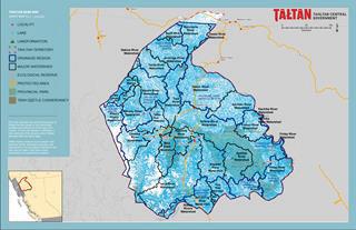 2. A showpiece territorial map displaying Tāłtān place names for points of significance;