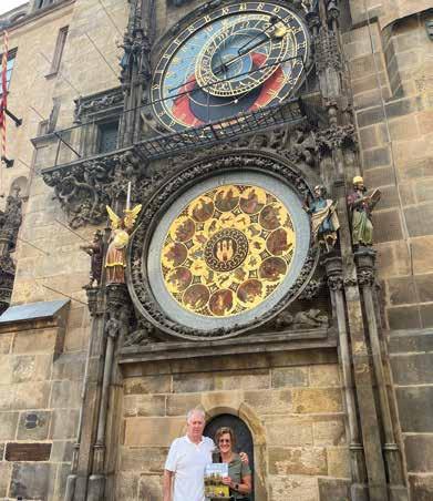 At the end of a river cruise up the Danube River, Bob and Lynda Allen extended their trip to visit the Czech Republic. They took this picture in the historic city center of Prague in front of the popular medieval Astronomical Clock, which gives an animated hourly show.