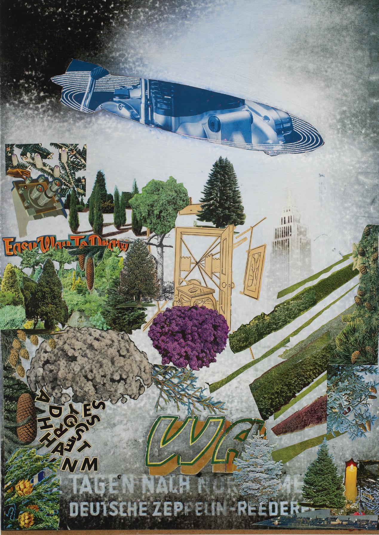 While he has worked in a variety of media throughout his life, collage making is the media that now dominates Letscher’s practice. His collages have changed through the years, from open to compact, abstract to representational, and maybe even minimalist to maximalist.