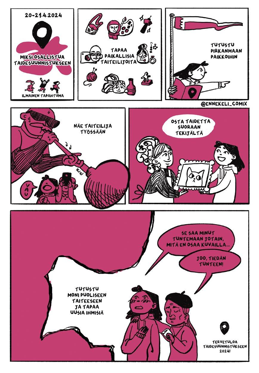 Olen parhaillani suomen kielen kurssilla Tampereen aikuiskoulutuskeskuksessa ja sitä kautta tulin alkuvuodesta 2024 harjoitteluun Taidesuunnistus ry:hyn. Harjoitteluaikani oli ihanaa ja kaikki olivat todella ystävällisiä minulle. Olen onnellinen, että pystyin auttamaan omilla kuvituksillani tapahtuman tuotantoa. Harjoittelussa minut yllätti positiivisesti se, että kaikki ymmärsivät mitä piirrän ja miksi piirrän. Lapsena minulle sanottiin usein, että sarjakuvani ja ajatukseni ovat outoja. Se saattaa olla totta, mutta nyt tiedän, että on paikkoja ja mahdollisuuksia, joissa voin käyttää tätä outoutta hyödyksi.”