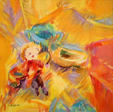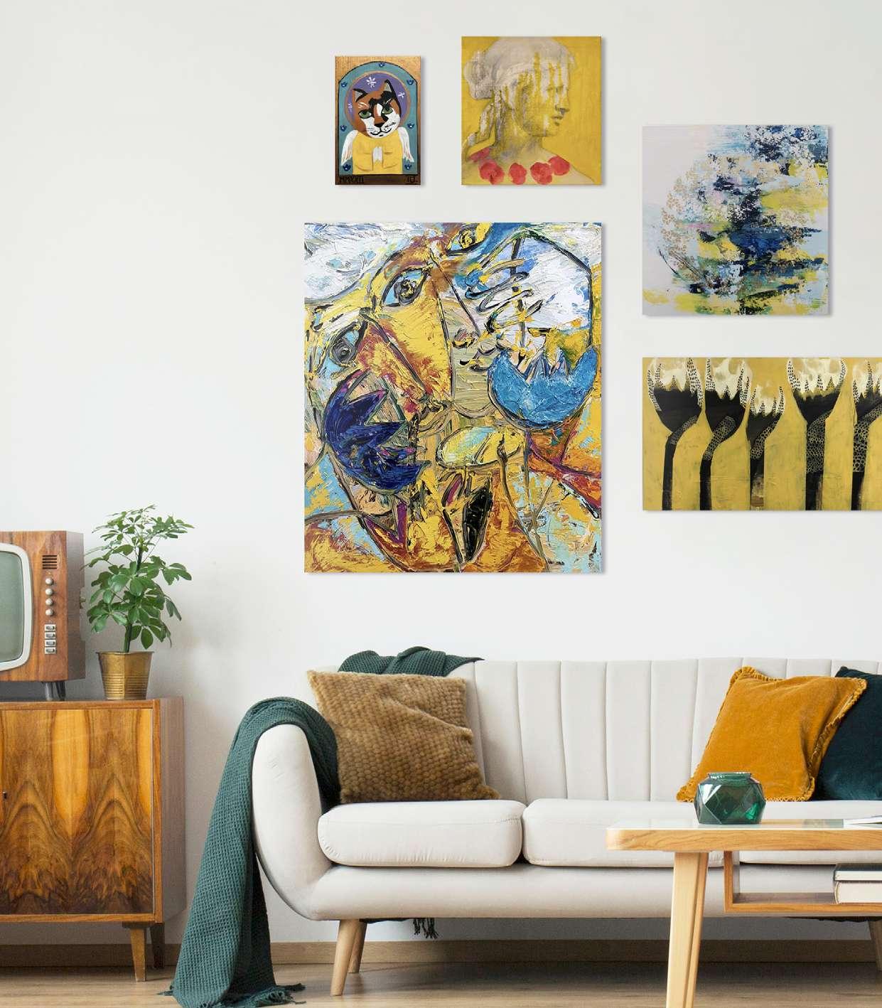 kultainen vangitsee katseen ja tuo koristeellisuutta monenlaiseen tilaan. Kullan kimalletta löytyy valikoimastamme niin maalauksista kuin veistoksistakin.