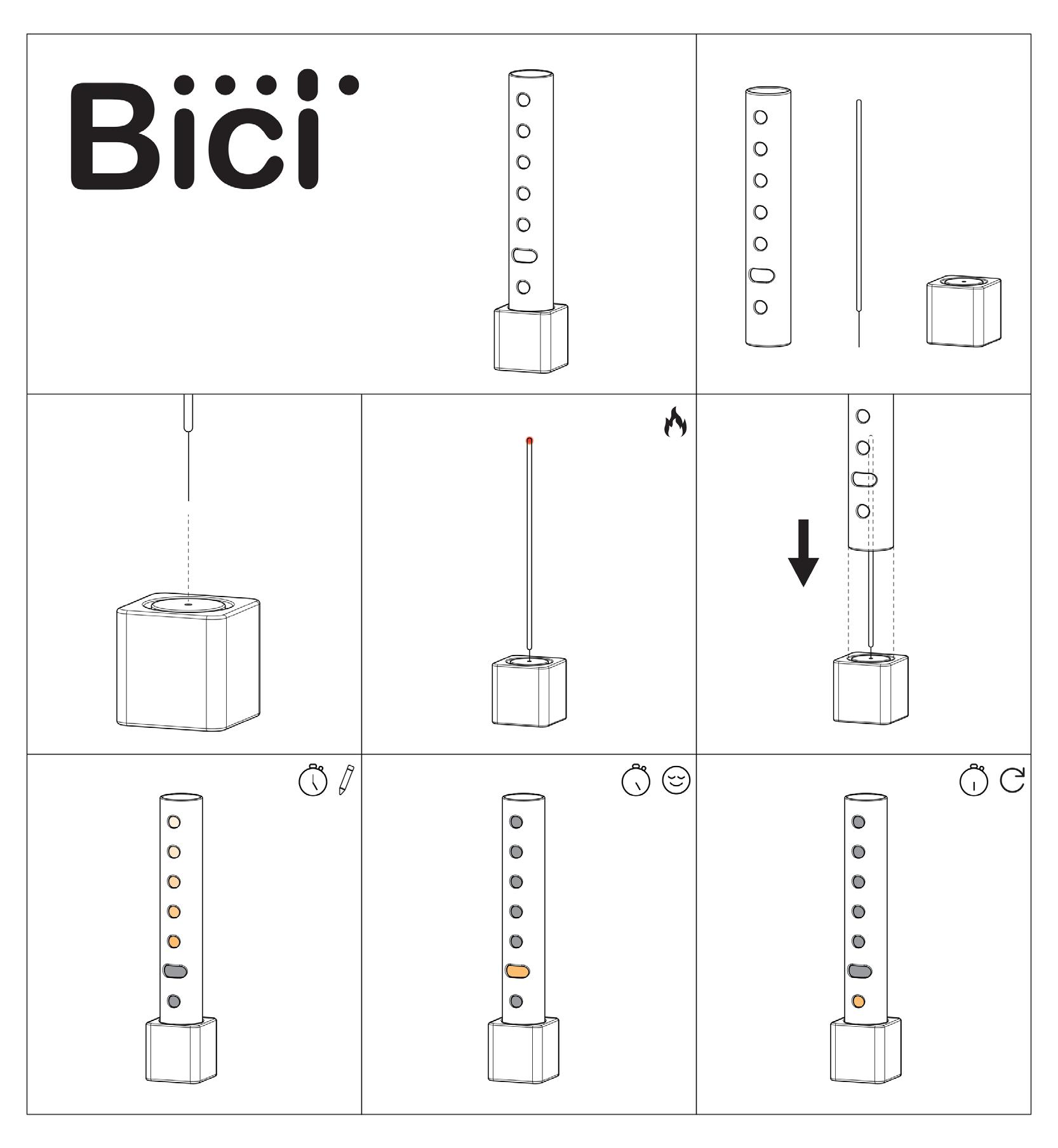A user manual designed after an ikea user manual showcasing the steps in using Bici, a multisensory incense burner for focusing