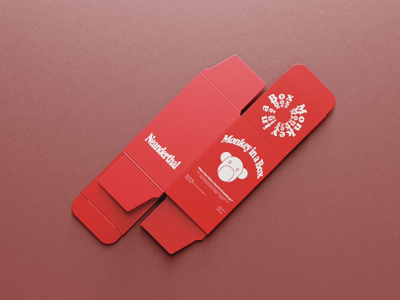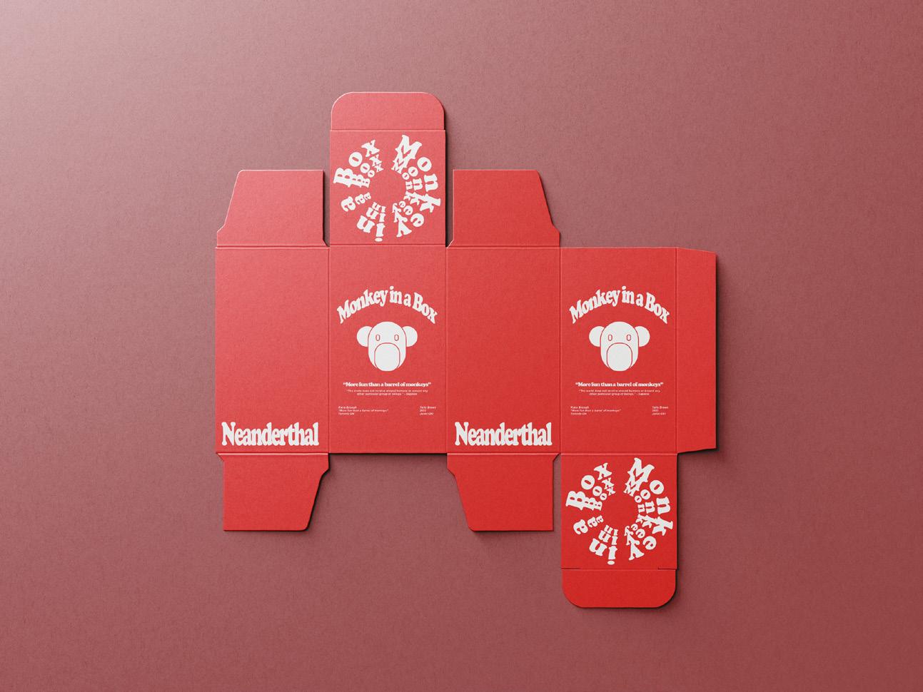Neanderthal toy figure packaging concept Play on “monkeys in a barrel”