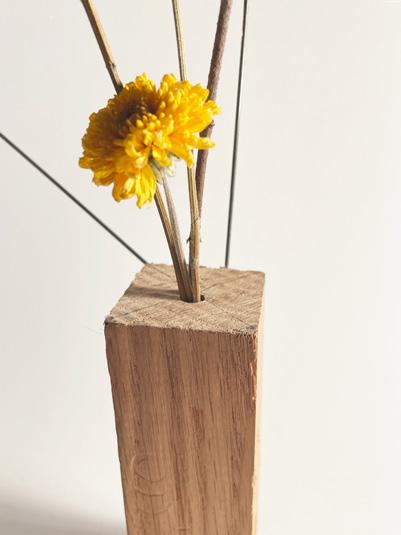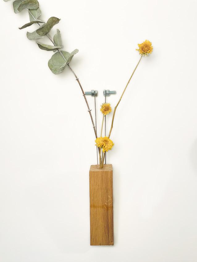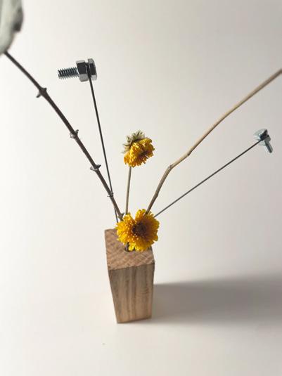 recycled solid wood, bicycle spokes dried eucalyptos and marigold