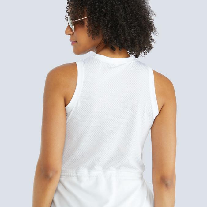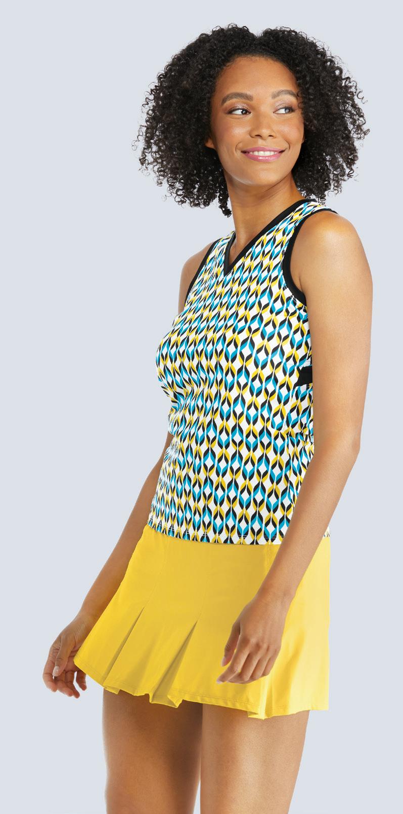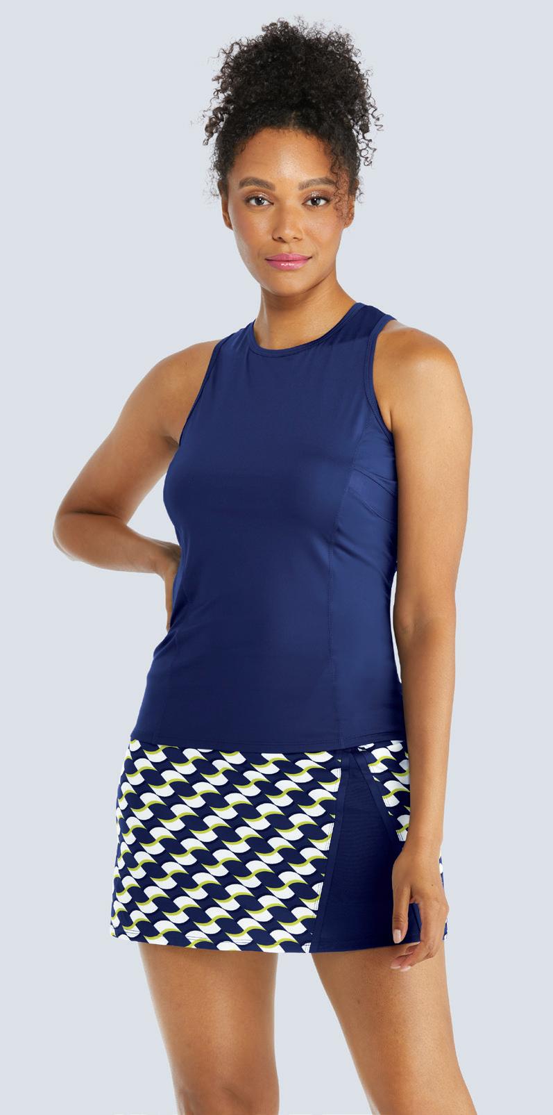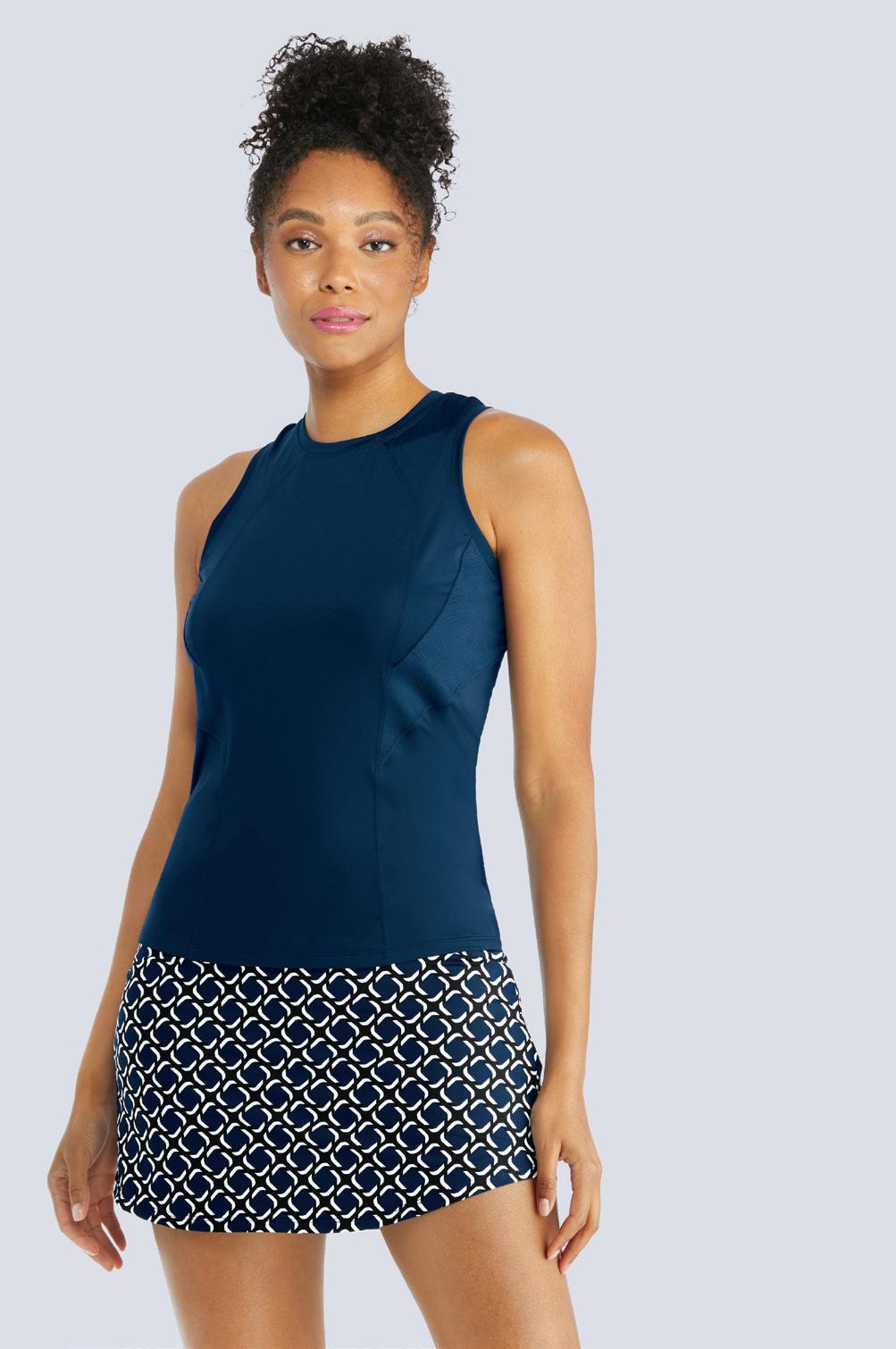 Cool Touch Double Knit, Hi-Neck, Light Support Tank w/ Scooped Armholes, 23” Length, UPF 50+