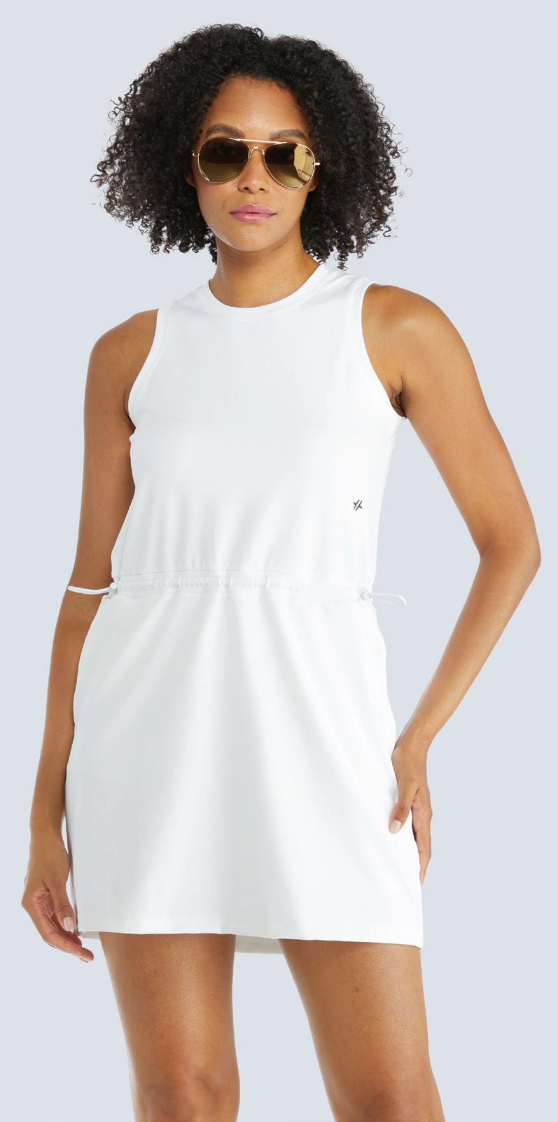 Cool Touch Double Knit, Crew Neck Sleeveless Drawcord Waist Dress w/ Shorties, 33” Length, UPF 50+