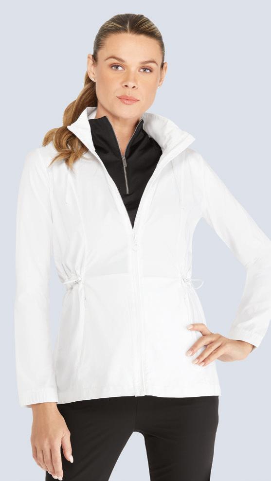 Plush Jersey, Full-Zip Jacket, Ruched Trim, Pockets, Rivets, 26” Length, UPF 50+, 87% Polyester, 13% Spande Chalk XS-XL B3500