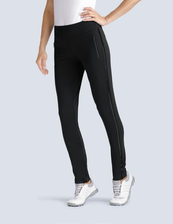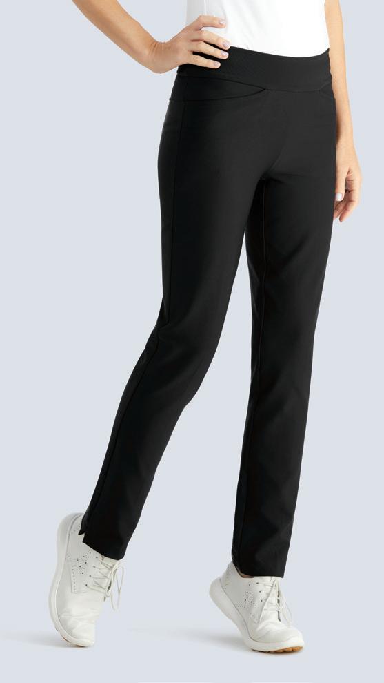 Pull-On, Slim Leg, Natural Waist, Sublime Bi-Stretch, Smooth Front, Zip Pockets, 31” Inseam, 42” Outseam, UPF 50+, 93% Polyester, 7% Spandex