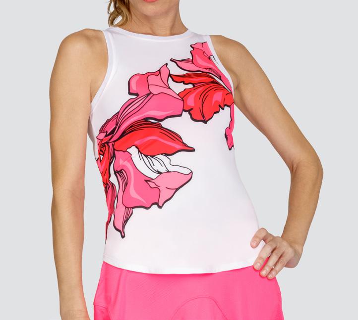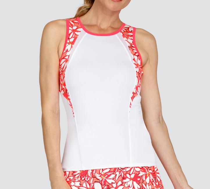 Leaf Jacquard, Crew Neck Tank w/ Side Vents, 24” Length, UPF 50+