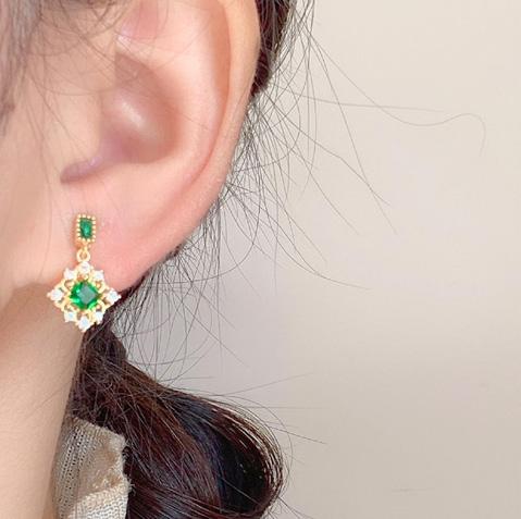 材质:铜,猫眼石, 锆石 工艺:电镀金 规格:1.30x1.30 cm