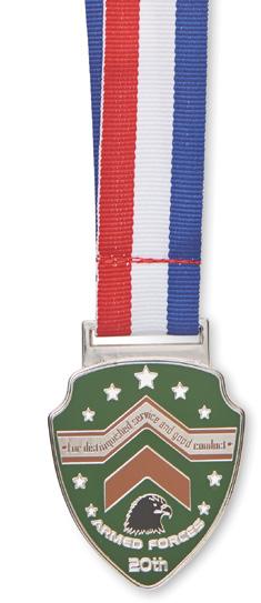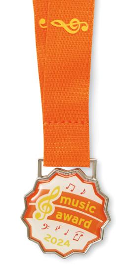 Zinklegering medaille met full colour UV geprint oppervlak en Lus-gestikt lint. Max. formaat eigen vorm: 65 mm.