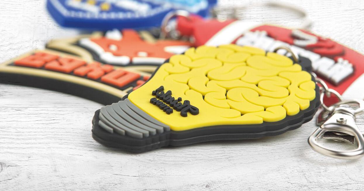 PVC vinyl sleutelhanger met LED-lampje in eigen vorm.