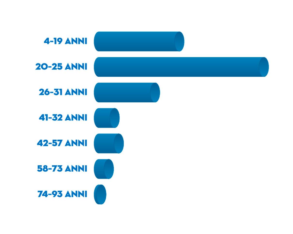 I grafici che seguono illustrano alcuni dettagli della nostra community, sempre attiva nelle proposte sportive che oltre a permettere la partecipazione a competizioni federali, regalano a molti amatori, la possibilità di iniziare a praticare, anche in età adulta, attività sportive mai provate prima.