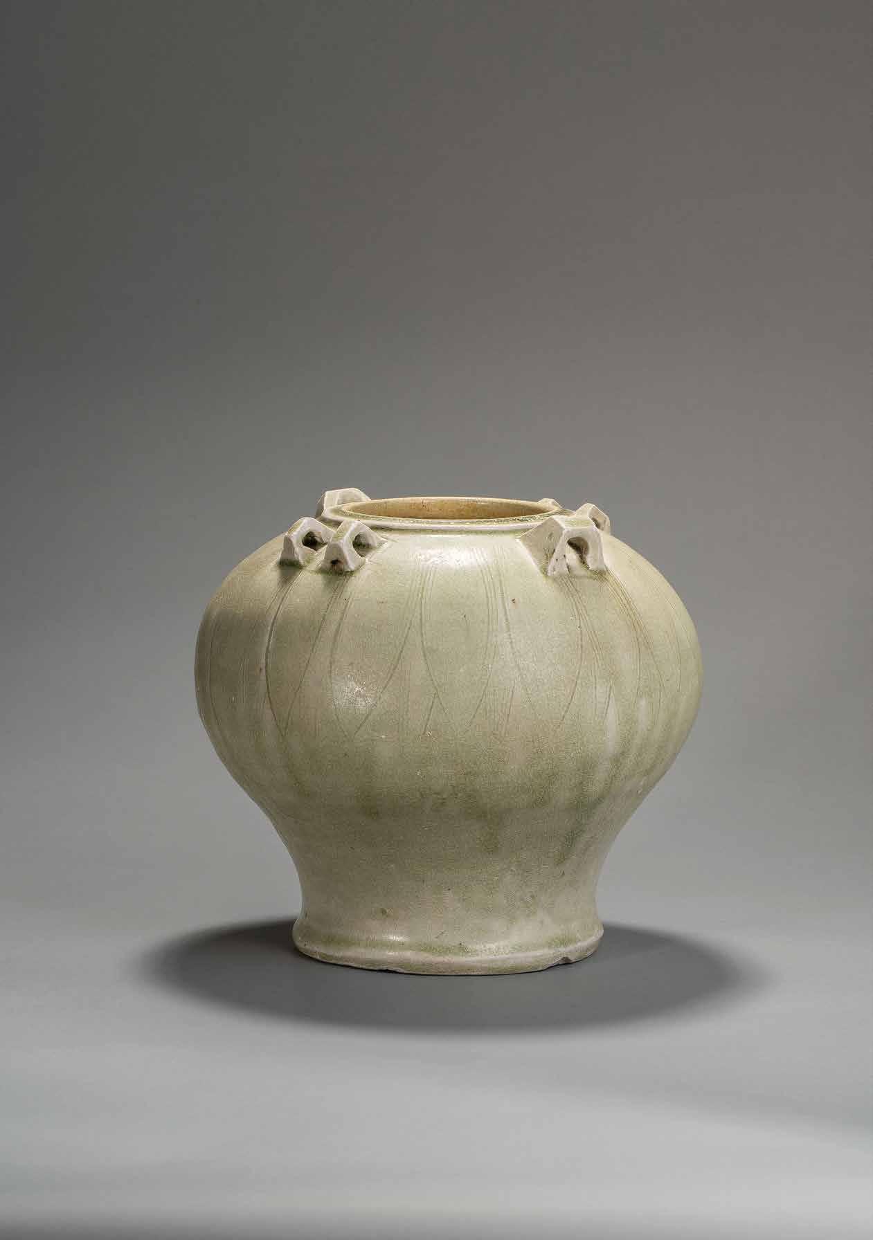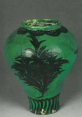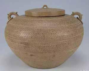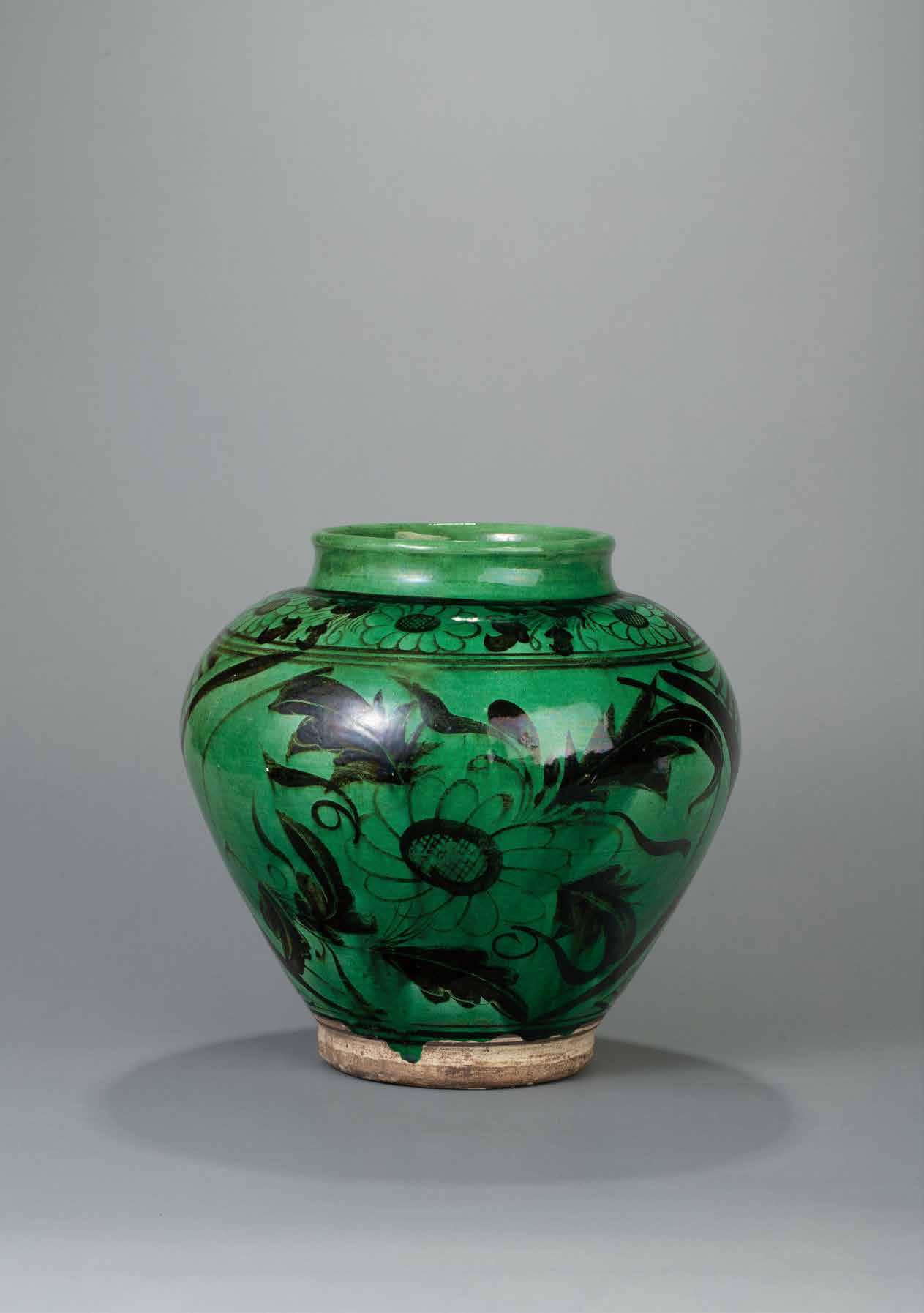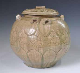 名品之一的金代磁州窯剔花嬰戲蓮紋罐展品 (No.31),器形碩大,圓肩鼓腹,上下分飾回