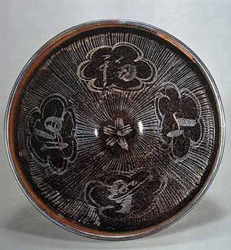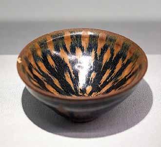 之二的化妝手法黑釉茶具,如剪紙貼花,玳瑁釉、樹葉紋、描金花、黑釉繪花等。本 書 多件宋代茶具展品,包括黑釉茶具在內的南北不同色釉盞具,俱為當代茗飲茶具的 代表 作品,例如建窯宋代建窯兔毫束口盞展品